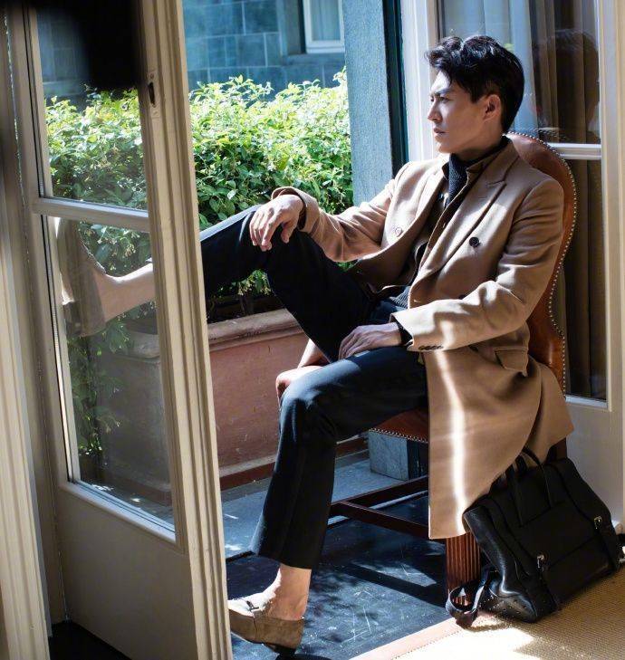 秋冬季节,大衣的出镜频率同样很高,十分适合具有身高优势的中年男性。在搭配时,要注重整体造型的塑形效果。下半身搭配九分裤,让皮鞋与大衣配色相呼应,“上长下短”的造型更有助于拉长身形比例。